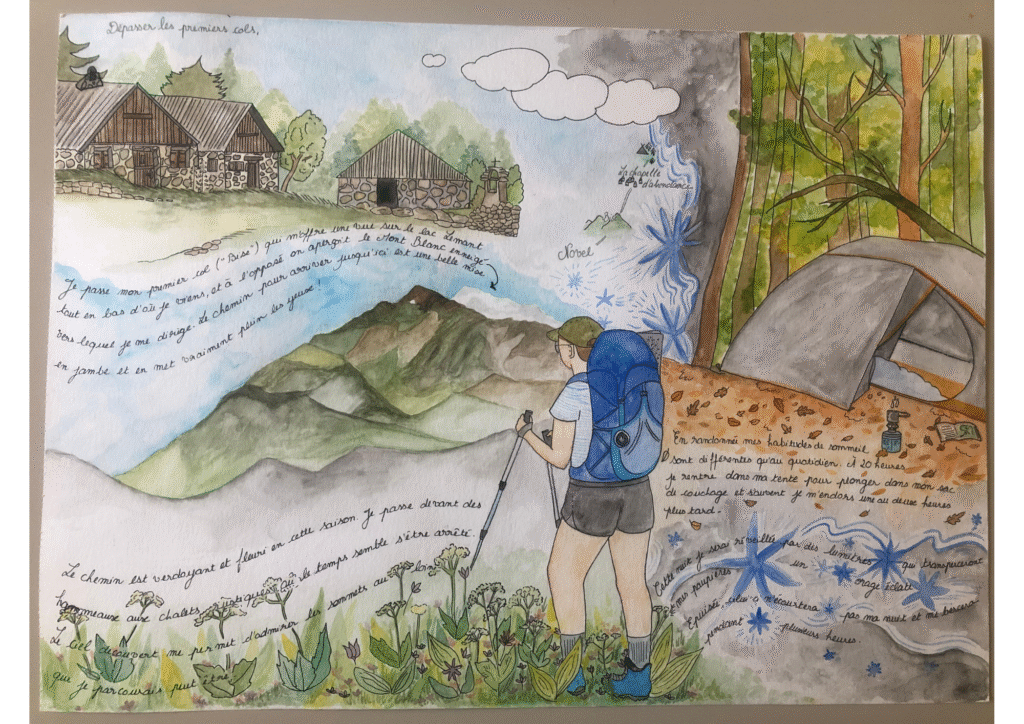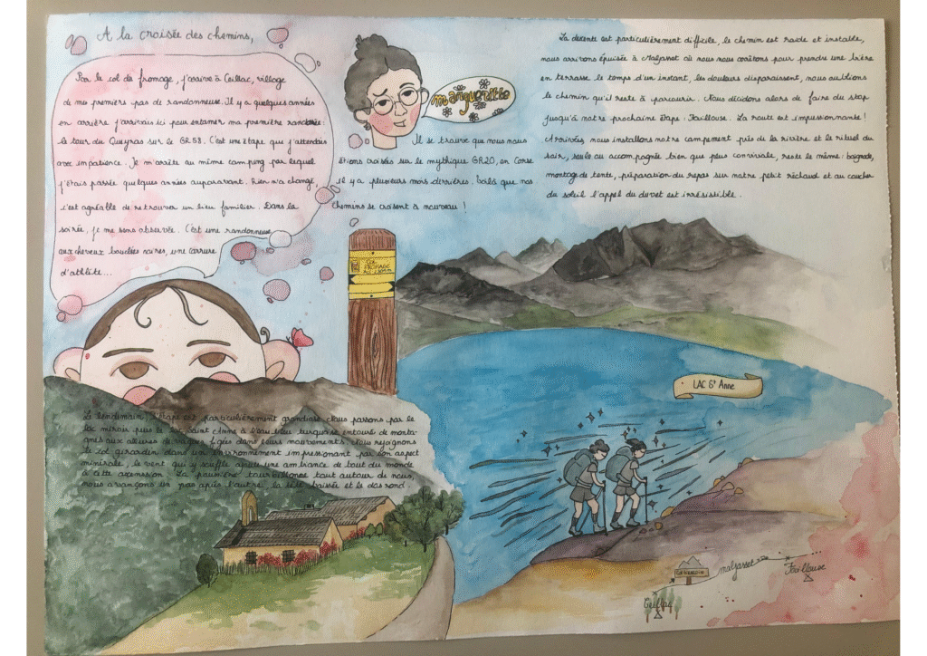 C’est alors que je me suis dit qu’il n’avait pas que des défauts, notre monde virtuel. Je suis tombée sur son compte de dessins, où elle partage notamment quelques planches de bandes dessinées qu’elle confectionne avec beaucoup de passion (et de talent). Étant du genre fascinée par celles et ceux sachant manier le crayon, j’ai écumé son compte, je le confesse. Bien mal m’en a pris, puisque j’ai trouvé des pépites : une partie de son récit sur le GR5, un itinéraire qui traverse les Alpes françaises, du Lac Léman à la Méditerranée. Une jolie balade d’environ 600 kilomètres qu’elle a effectuée durant l’été 2022.