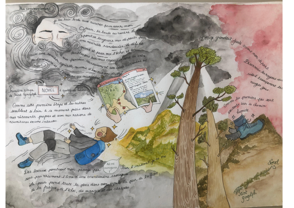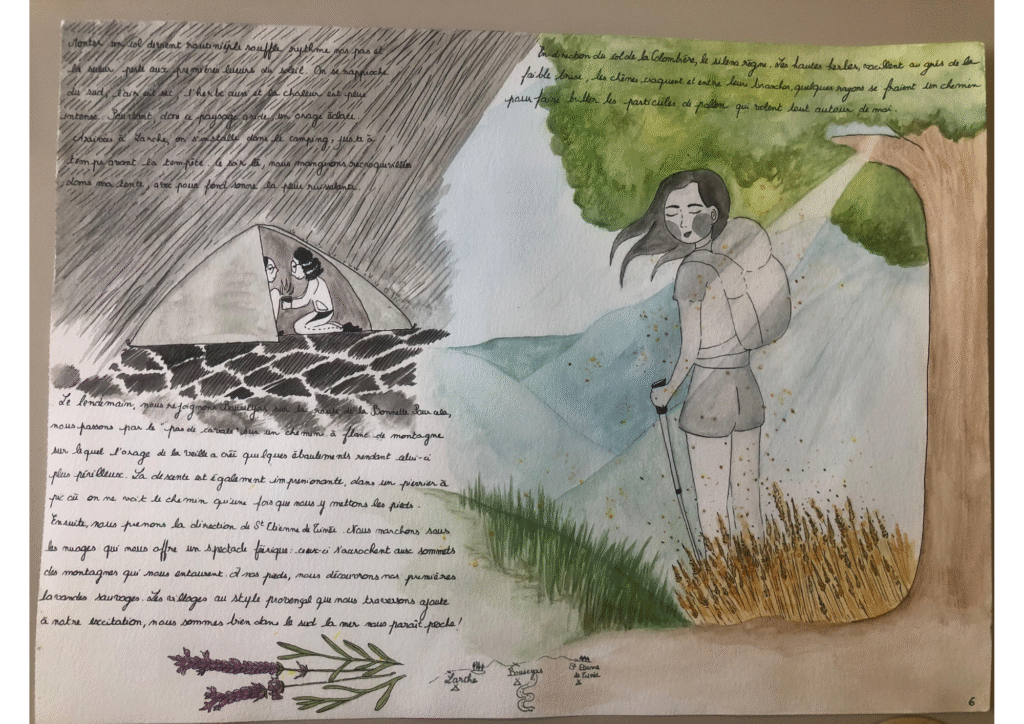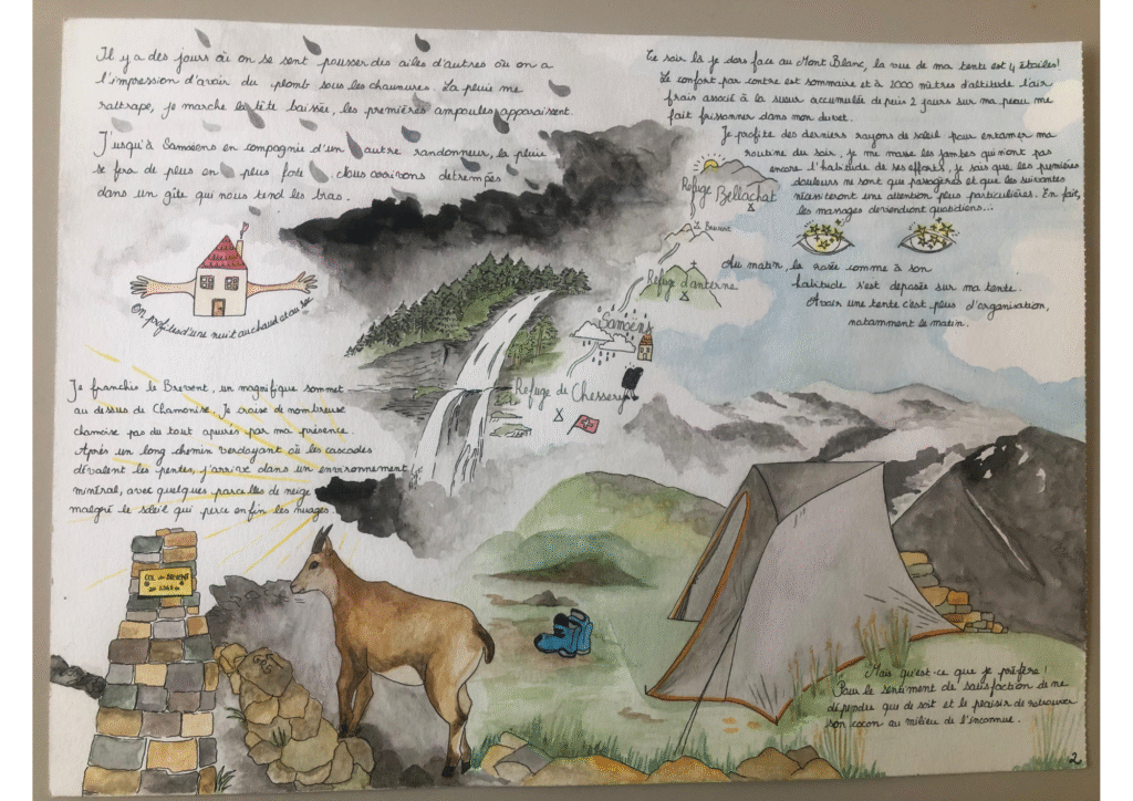 « Léa fait donc de la randonnée itinérante, encore un point commun », je me suis dit. Alors j’ai cliqué sur le bouton « suivre », avant de lui envoyer un message : « Je suis très fan de ton compte de dessins. Notamment de tes petits carnets de voyage. Tu pourrais me les envoyer en plus grand ? ».