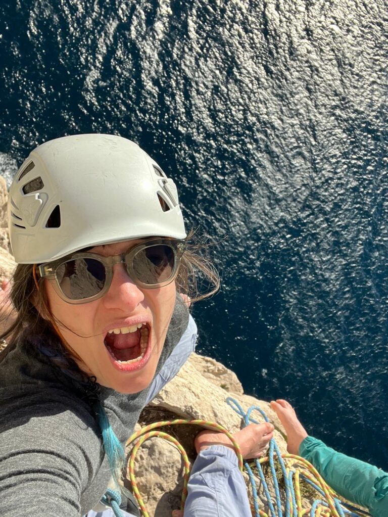 Les marches d’approche, parfois longues, ont aussi participé à la beauté du voyage. Traverser la calanque à pied, dans la lumière dorée du matin ou celle plus douce du soir, c’était déjà une aventure en soi. Après notre grande voie à Castelviel, je me suis baignée à En-Vau. C’était une sensation de liberté totale, un vrai luxe.